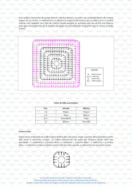 Podéis descargaros el patrón para hacer la mantita de apego amigurumi mickey - minnie mouse en pdf AQUÍ.